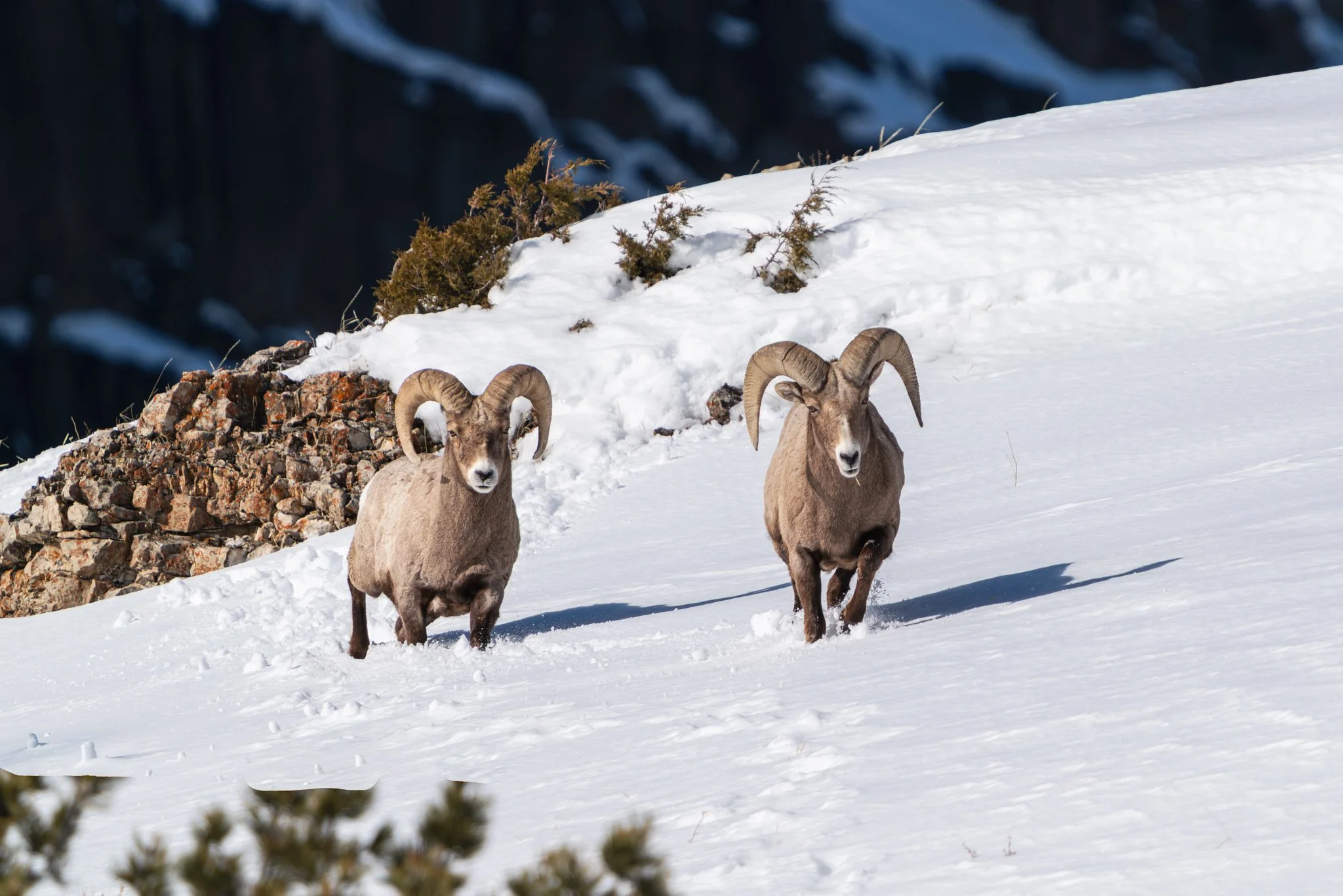Bighorn sheep are masters of survival. In winter, they descend from higher elevations to the steep, south-facing slopes near Gardiner, the Yellowstone River Canyon, and the Blacktail Plateau. These areas stay relatively snow-free, exposing vital grasses and shrubs.
